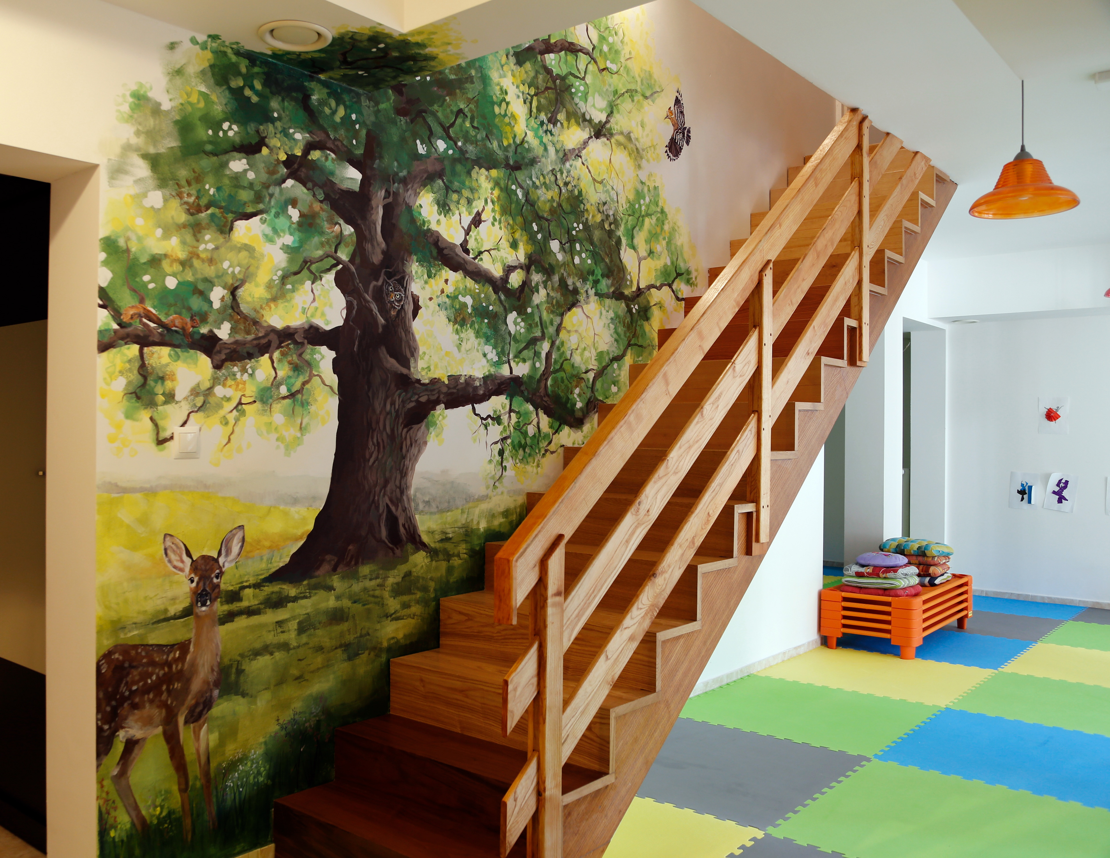 Dzieci najlepiej czują się pośród natury, toteż otoczenie starego dębu, wraz z jego mieszkańcami idealnie wpasowuje się w przedszkolną przestrzeń. Malowidło oddziałuje na wyobraźnię dzieci, kolorystyka uspakaja i relaksuje.